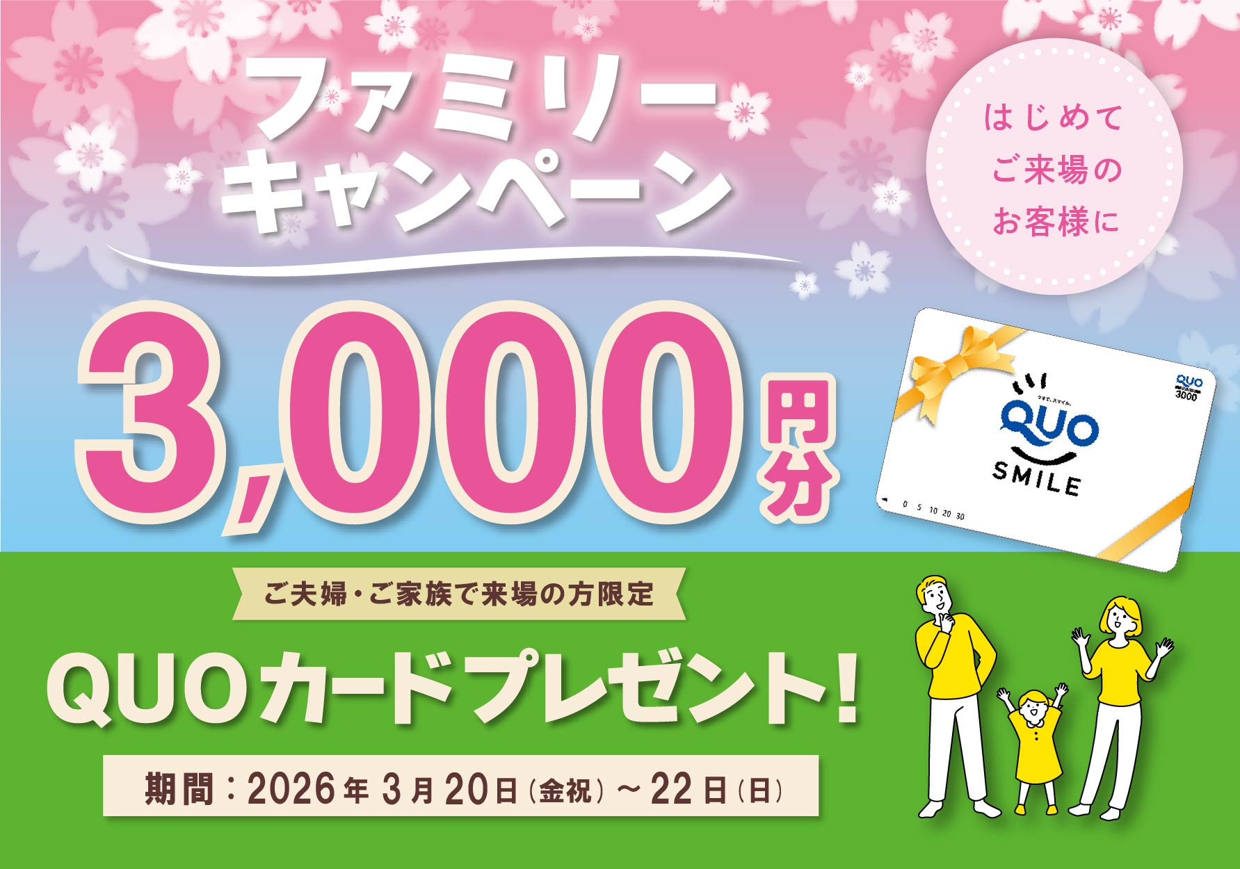 ファミリーキャンペーン QUOカード3,000円プレゼント!