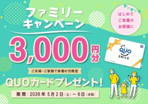 イベントファミリーキャンペーン QUOカード3,000円プレゼント!