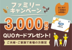 イベントファミリーキャンペーン QUOカード3,000円プレゼント!